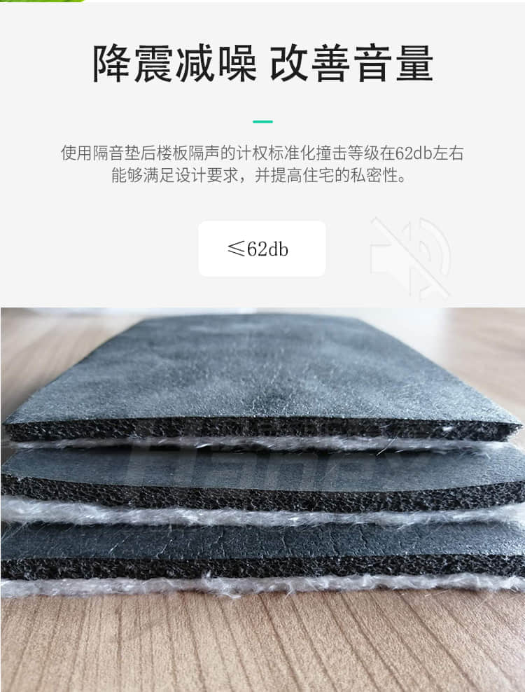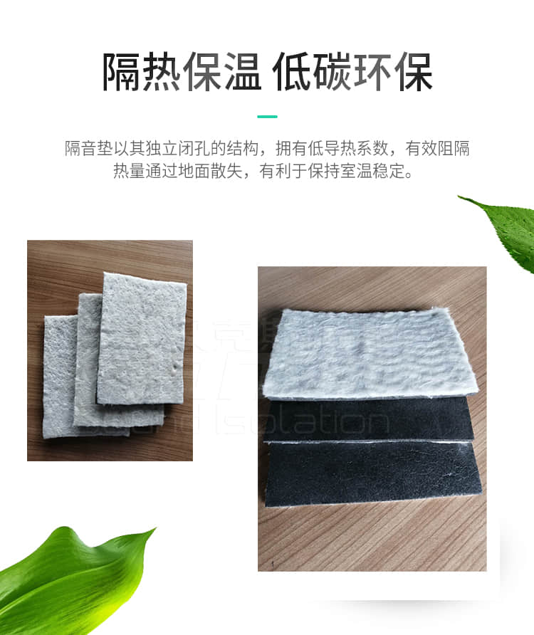 具有隔音好,防水防潮,無(wú)毒環(huán)保,隔熱保溫,回彈力好,重量輕,使用壽命長(zhǎng)等特點(diǎn),是解決住宅噪音問(wèn)題的專(zhuān)業(yè)隔音產(chǎn)品,是一種新型節(jié)能環(huán)保材料。