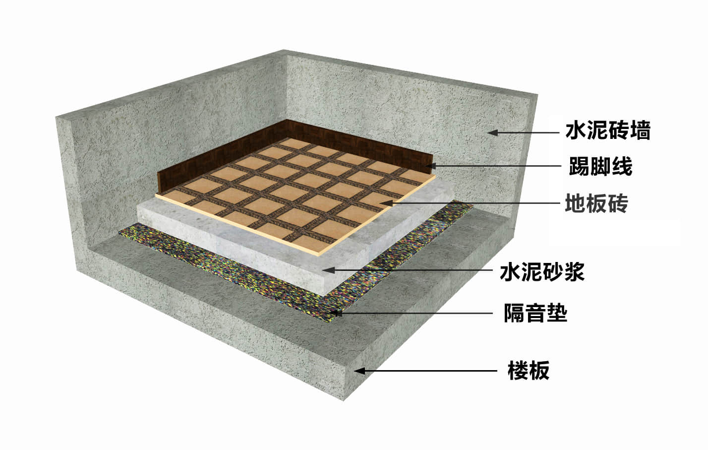 浮筑地面做法是一種有效的隔音減振技術,廣泛應用于各種需要降低噪音和振動的場所,如住宅、學校、醫院等。下面介紹浮筑地面的做法:
